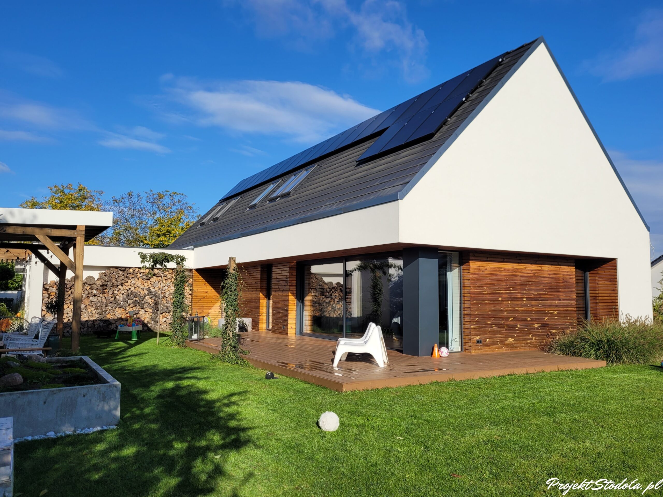 Our installation is relatively small. It’s a 6 kWp system, but positioned in the best possible way – on a roof slope facing south. This positioning maximizes the benefits, resulting in the most advantageous photovoltaic production. The annual production amounts to approximately 7 MWh, which is 7000 kWh. Good building orientation is crucial for energy-efficient buildings – in short, we aim to minimize energy loss while maximizing production. Another important aspect is having a simple roof structure to accommodate the panels. It’s also great if this can be done aesthetically.