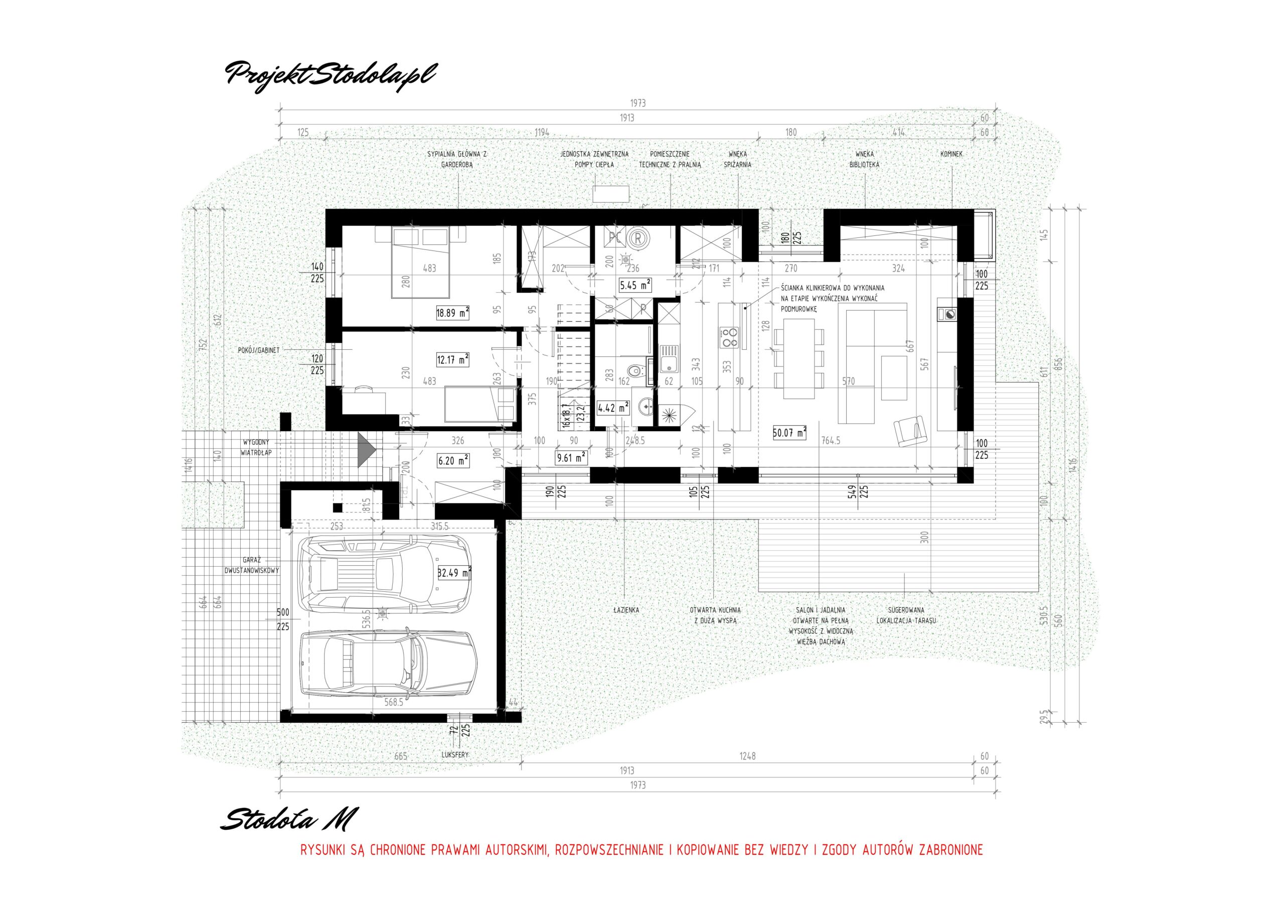 The drawing shows the minimum distances from the property boundary according to Polish building regulations. In your region, these distances may be different.
