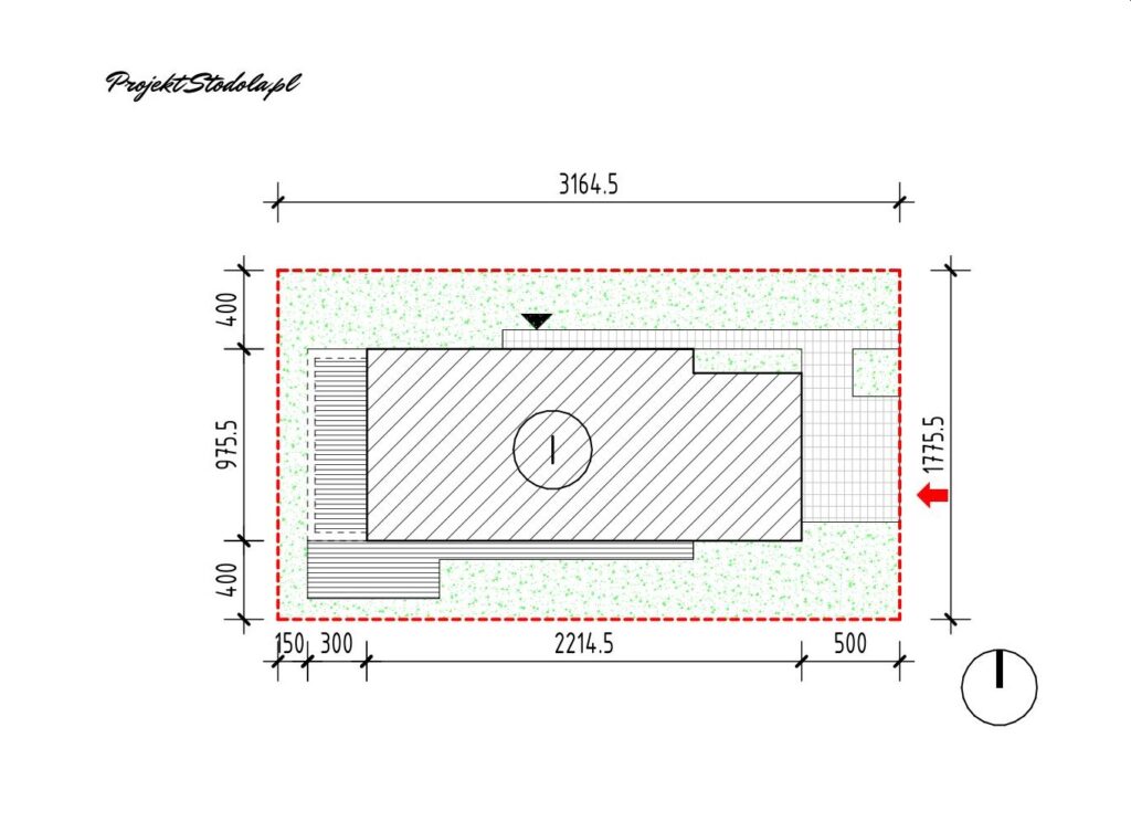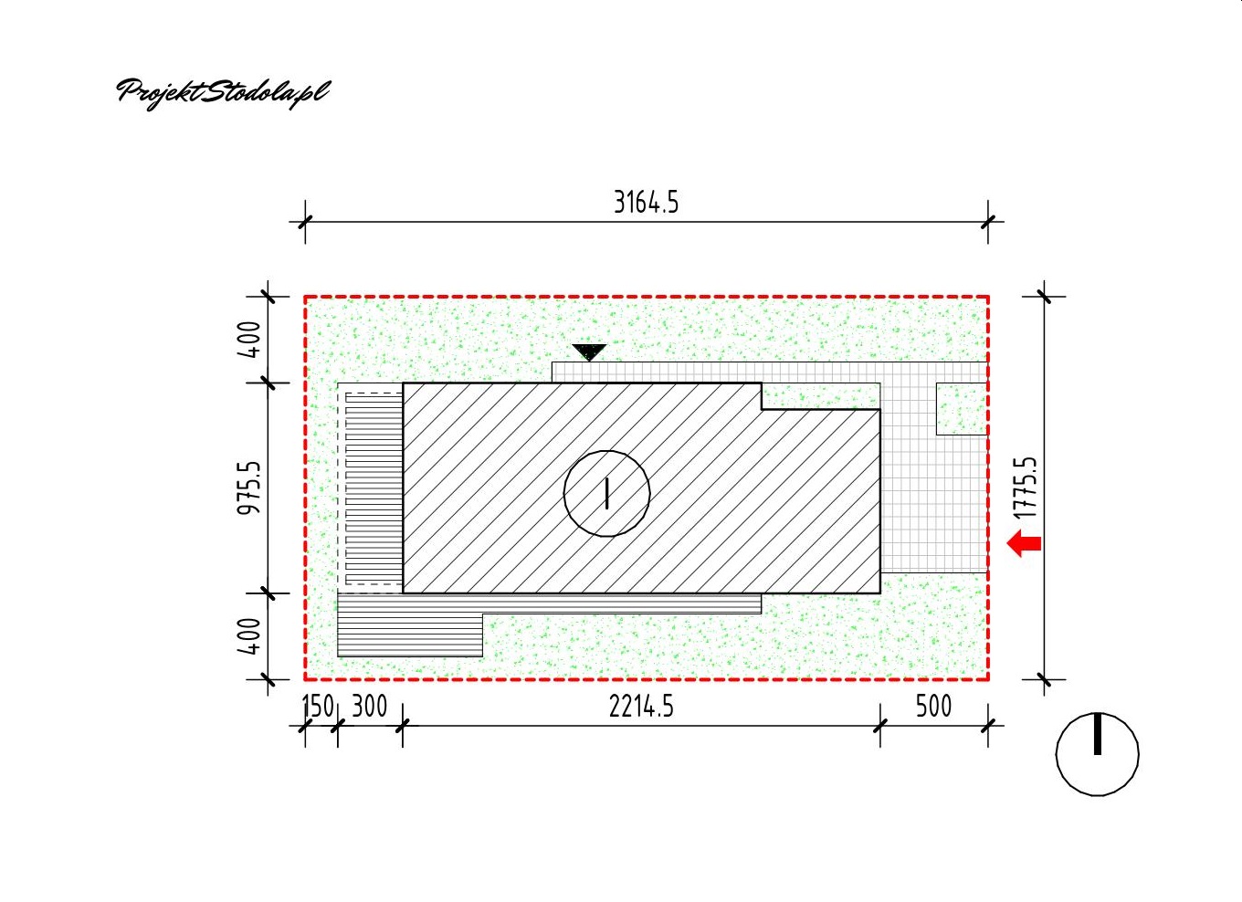 The drawing shows the minimum distances from the property boundary according to Polish building regulations. In your region, these distances may be different.