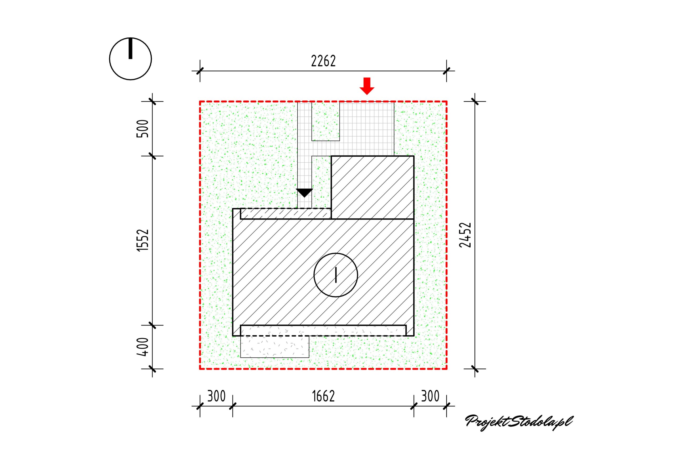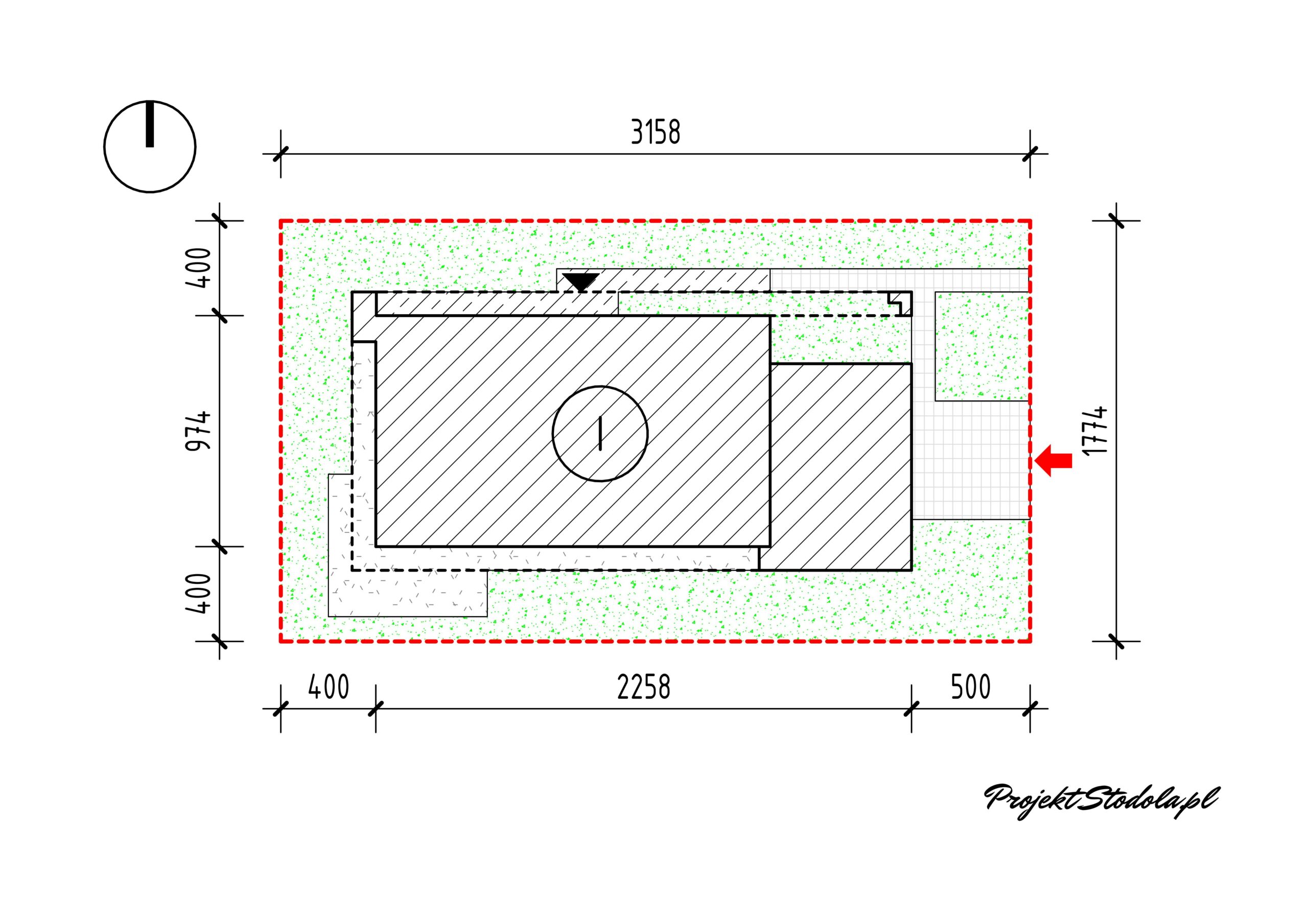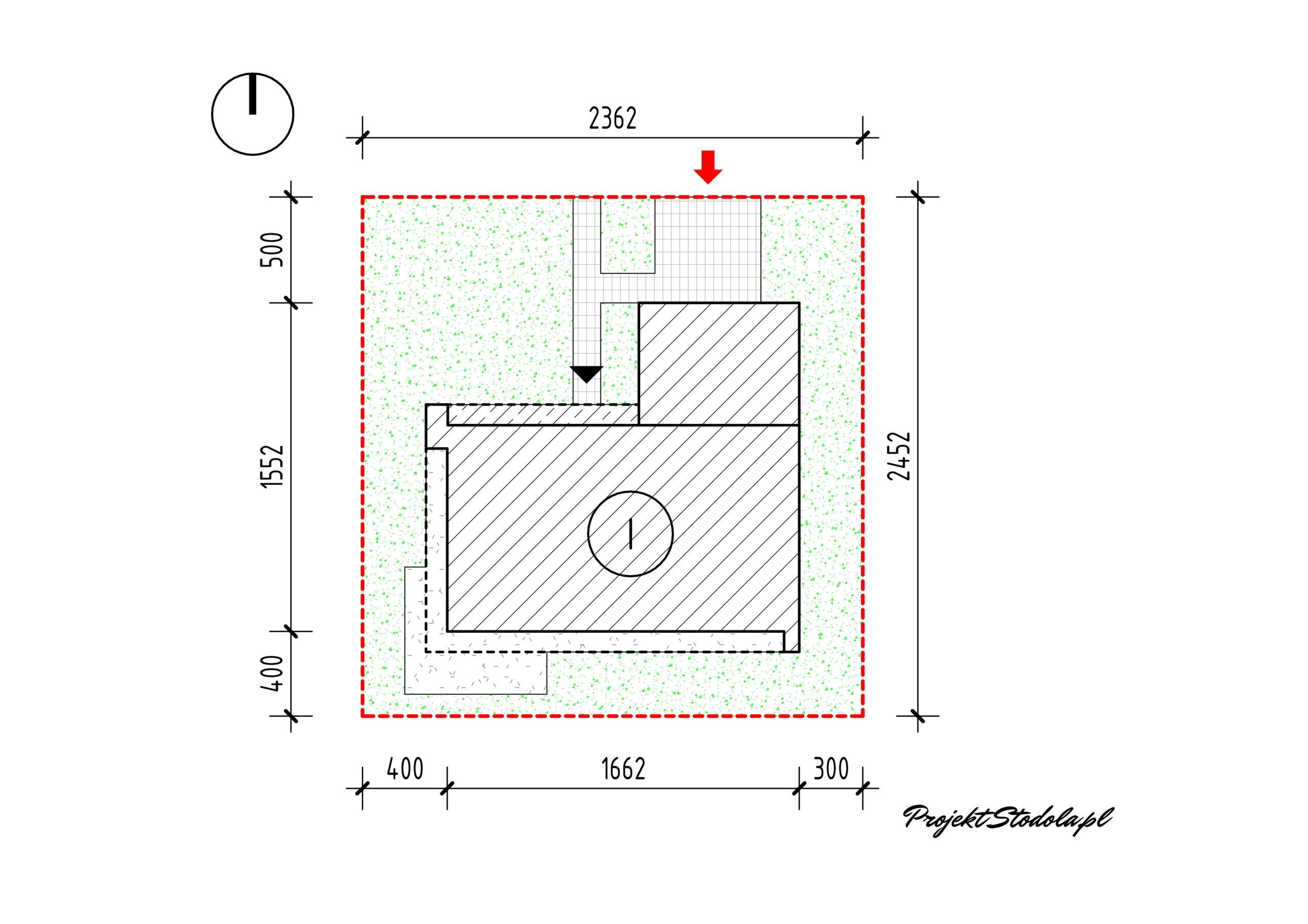 The drawing shows the minimum distances from the property boundary according to Polish building regulations. In your region, these distances may be different.