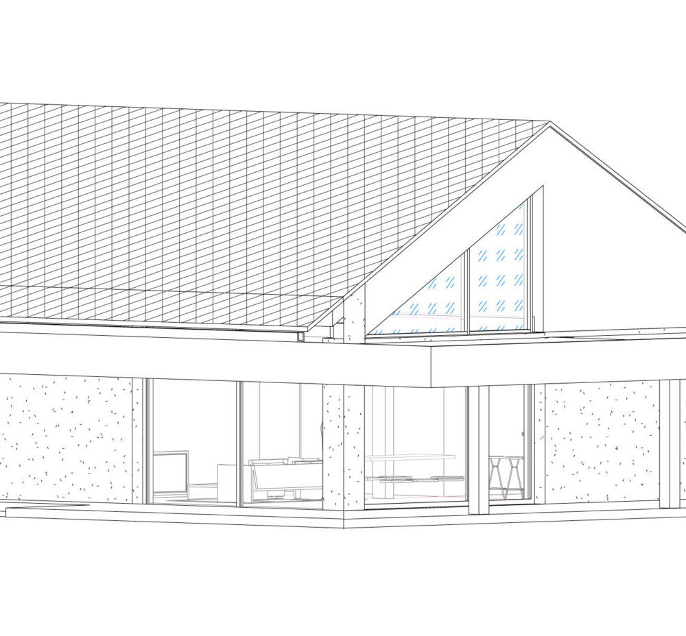 By default, our projects are designed using traditional technology: strip foundations, masonry walls made of concrete blocks, insulated with mineral wool or polystyrene and a wooden truss roof.