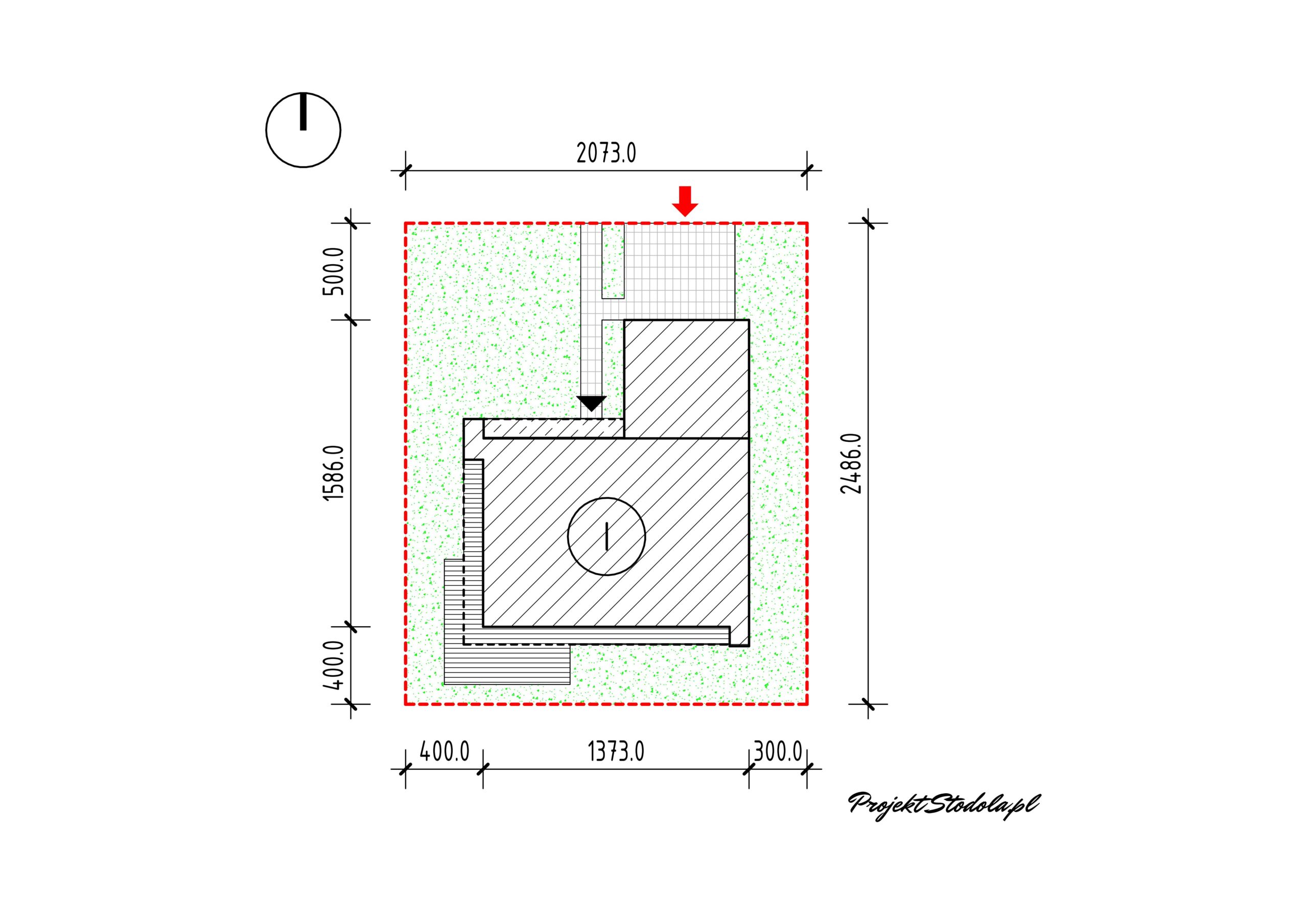 The drawing shows the minimum distances from the property boundary according to Polish building regulations. In your region, these distances may be different.